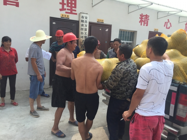 千里清蒸,万里红烧,又是一年高温季,白天气温已达到37℃以上。然而,在万富集团的工地上,却是丝丝清凉。7月21日, 宜昌万富工贸集团总经理易文君组织地产部员工,将一千多斤西瓜送到万富·智慧城工地上,给奋战在建设一线的农民工兄弟带来了这份夏日的清凉,向高温天气里工作的战士们致敬!