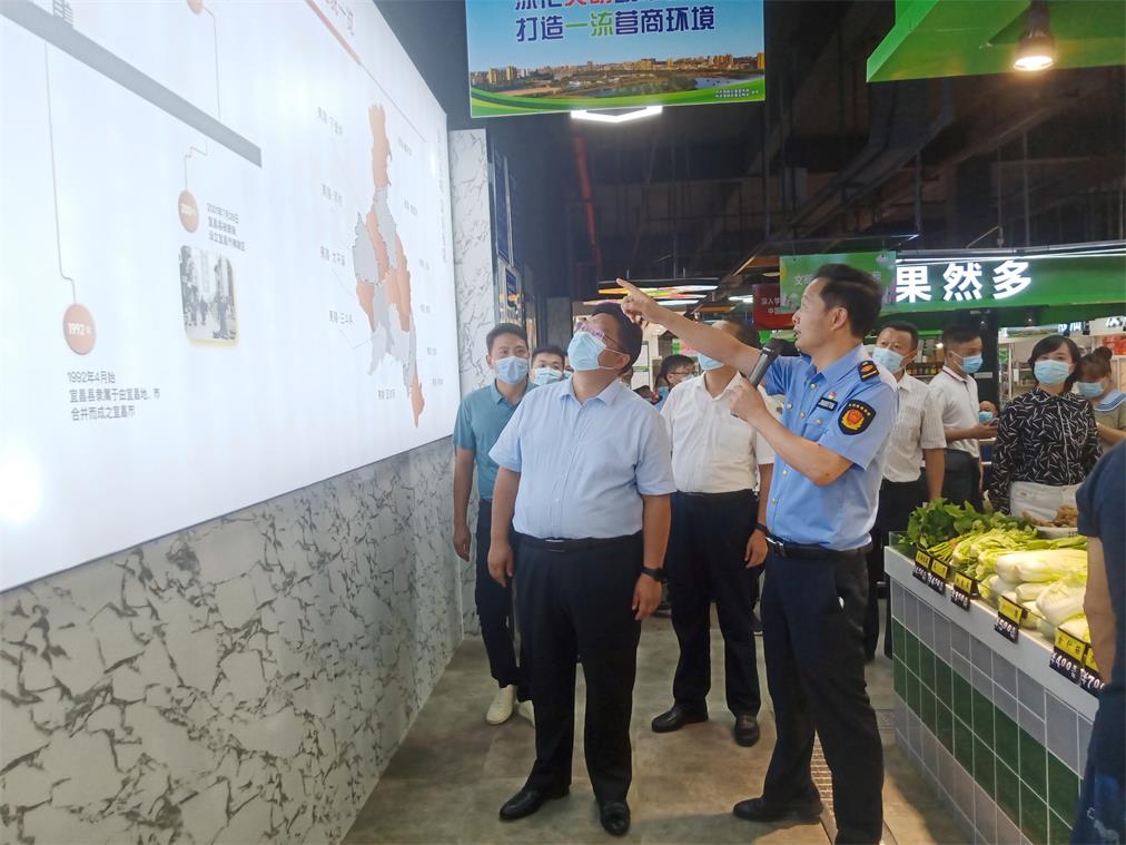 8月22日下午,夷陵区委书记肖鹏飞,区委副书记、代区长李兴兵率队赴吉美臣名都菜市,检查督办创建全国文明典范城市工作,强调在创建工作中要查问题、找不足,提建议、建模板,汇聚创建更大力量。集团总经理易文君及管理团队陪同迎检。