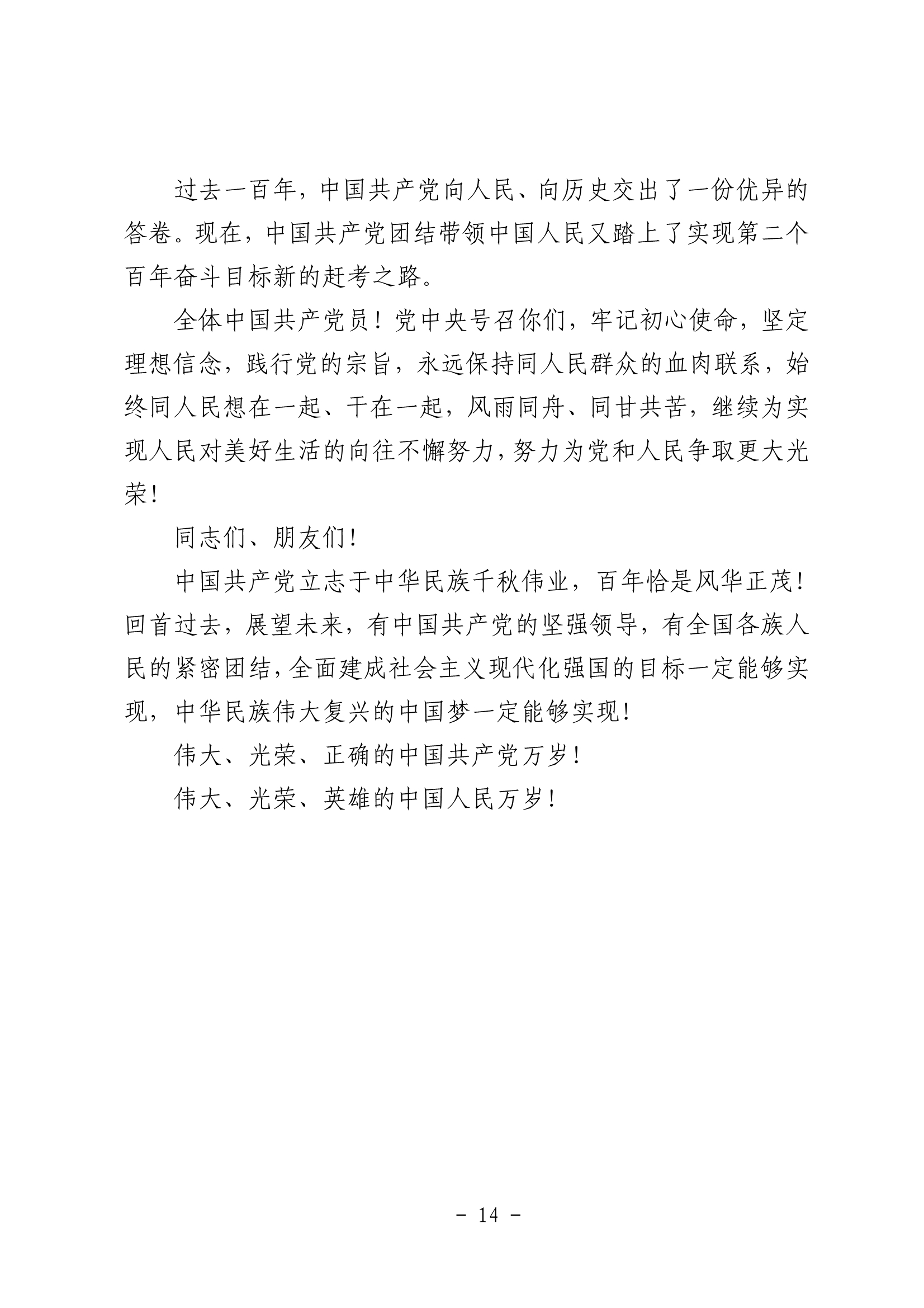 习近平主席在庆祝中国共产党成立100周年大会上的重要讲话