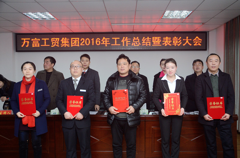 本次会议对2016年度表现突出的先进个人和优秀集体进行了表彰和奖励。授予宜昌万富工贸公司商贸部为“先进单位”;授予黄花等3家门店为“优秀门店”;授予蔡琴等15名同志“ 优秀管理者”荣誉称号;授予田秀恩等34名同志“先进个人”荣誉称号。集团总经理分别与分(子)公司负责人签订了2017年经营目标考核责任书和安全生产责任状。