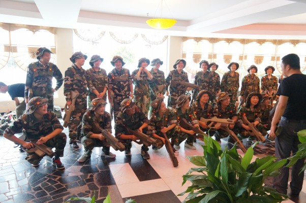 公司全体员工在教练员带领下,在室内进行了第一轮的团队热身项目。现场掌声如雷,一句句鼓舞人心的口号声,刹时间把活动现场沸腾起来······